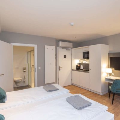 Kitchenette – refrigerator, freezer, kettle, coffee-maker, egg-boiler, microwave with barbecue-program, cutlery and dishes