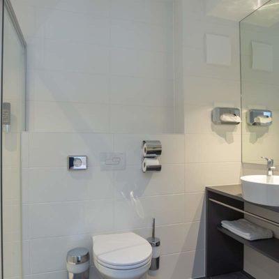 Also provided: towels, hair-dryer, shampoo, soap and tissues